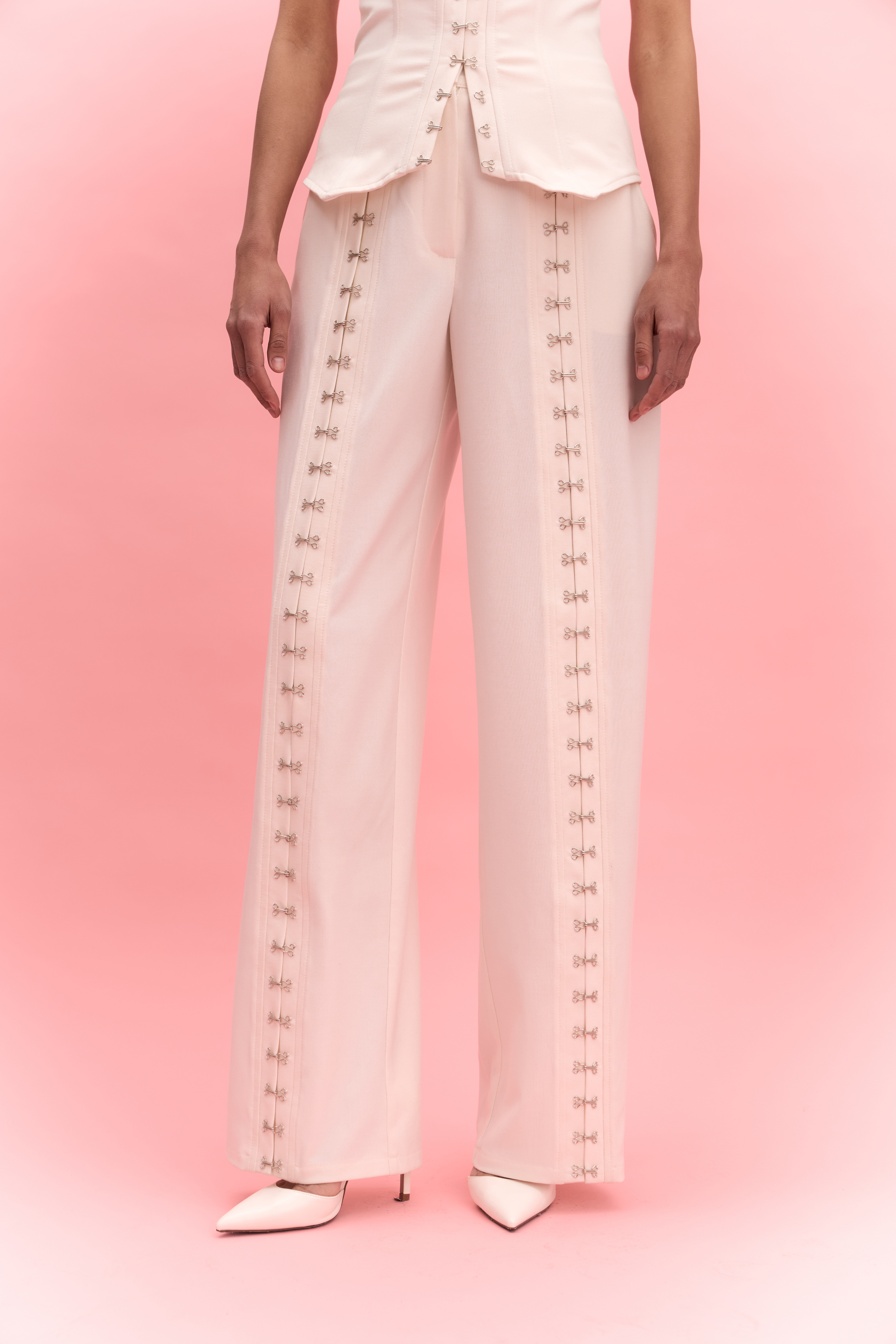 Брюки CREATIVE прямого вільного крою. Доповнені двома зручними боковими кишенями. Мають передни декоративні застібки.